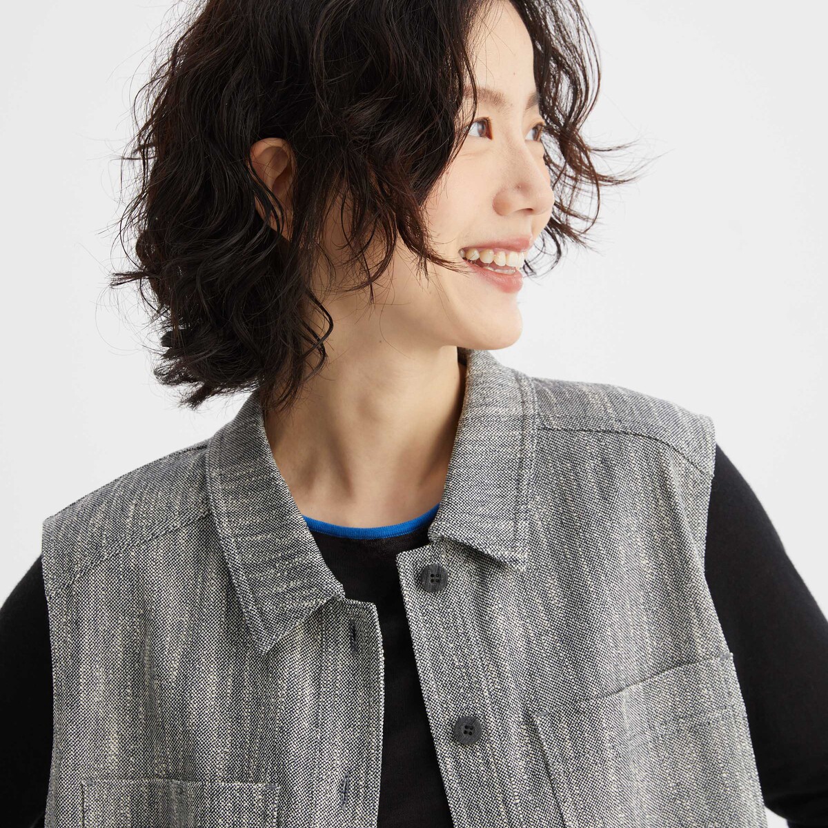 天猫【新品】ZUCZUG 素然26春女士简约休闲进口杂色色织布翻领马甲