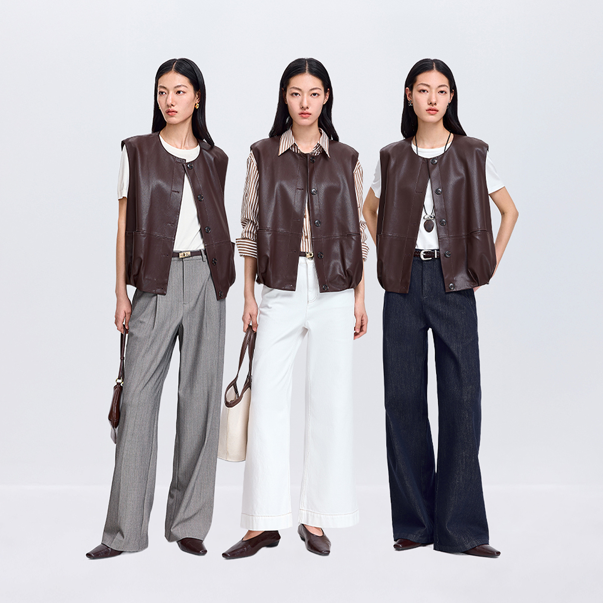 LILY 2026春新款复古无袖宽松圆领马甲背心,以深色基调诠释优雅通勤风范。采用优质面料,触感柔软,垂坠有型,宽松剪裁包容各种身形,短款设计拉长腿部线条,轻松打造高挑比例。经典圆领搭配无袖设计,简约中透露复古气质,可单穿亦可内搭衬衫、T恤,实现多场景穿搭,无论是职场通勤还是休闲出行皆能展现知性魅力。细节处注重工艺,走线工整,领口与下摆处理精致,彰显品质感。百搭属性极强,搭配半身裙或高腰裤,轻松营造简约高级的春日造型,是现代女性衣橱不可或缺的时尚单品。