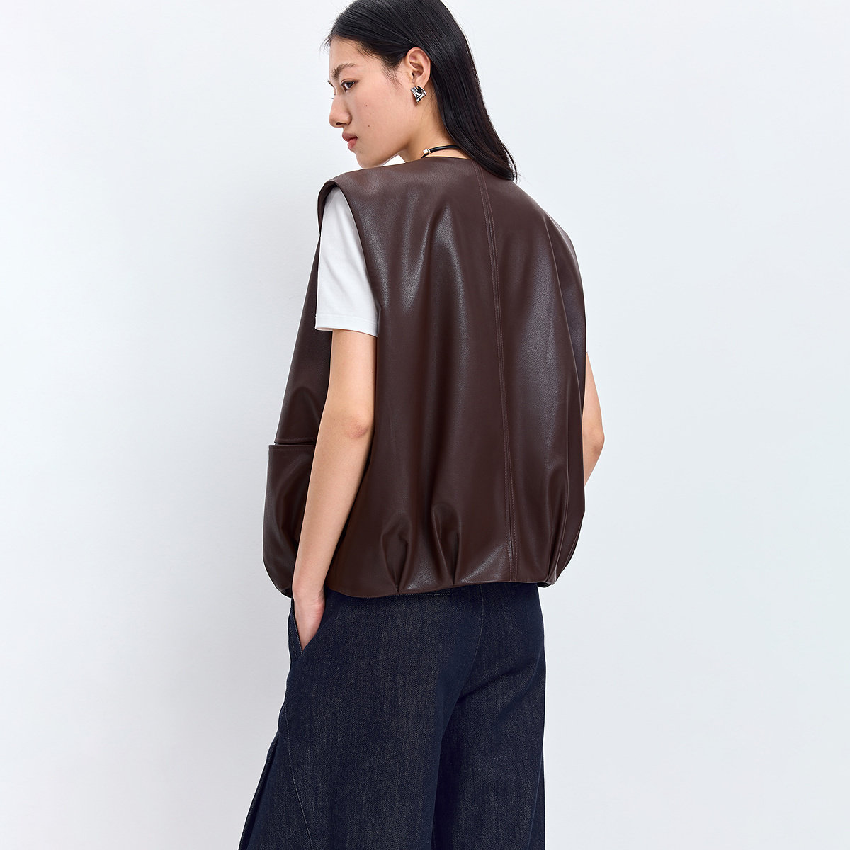 淘小C家 皮马甲女款2025新款冬高级感时髦洋气圆领马夹背心拉链外套
