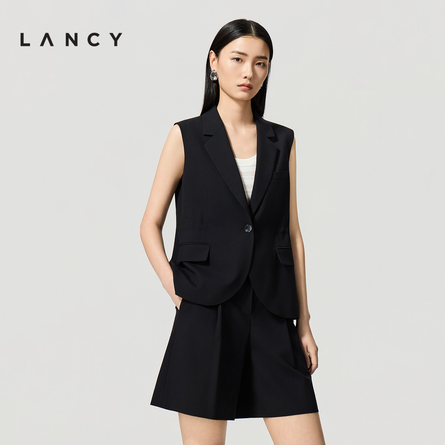 天猫【轻薄羊毛】LANCY/朗姿2026夏季新款气质通勤黑色西装马甲上衣女