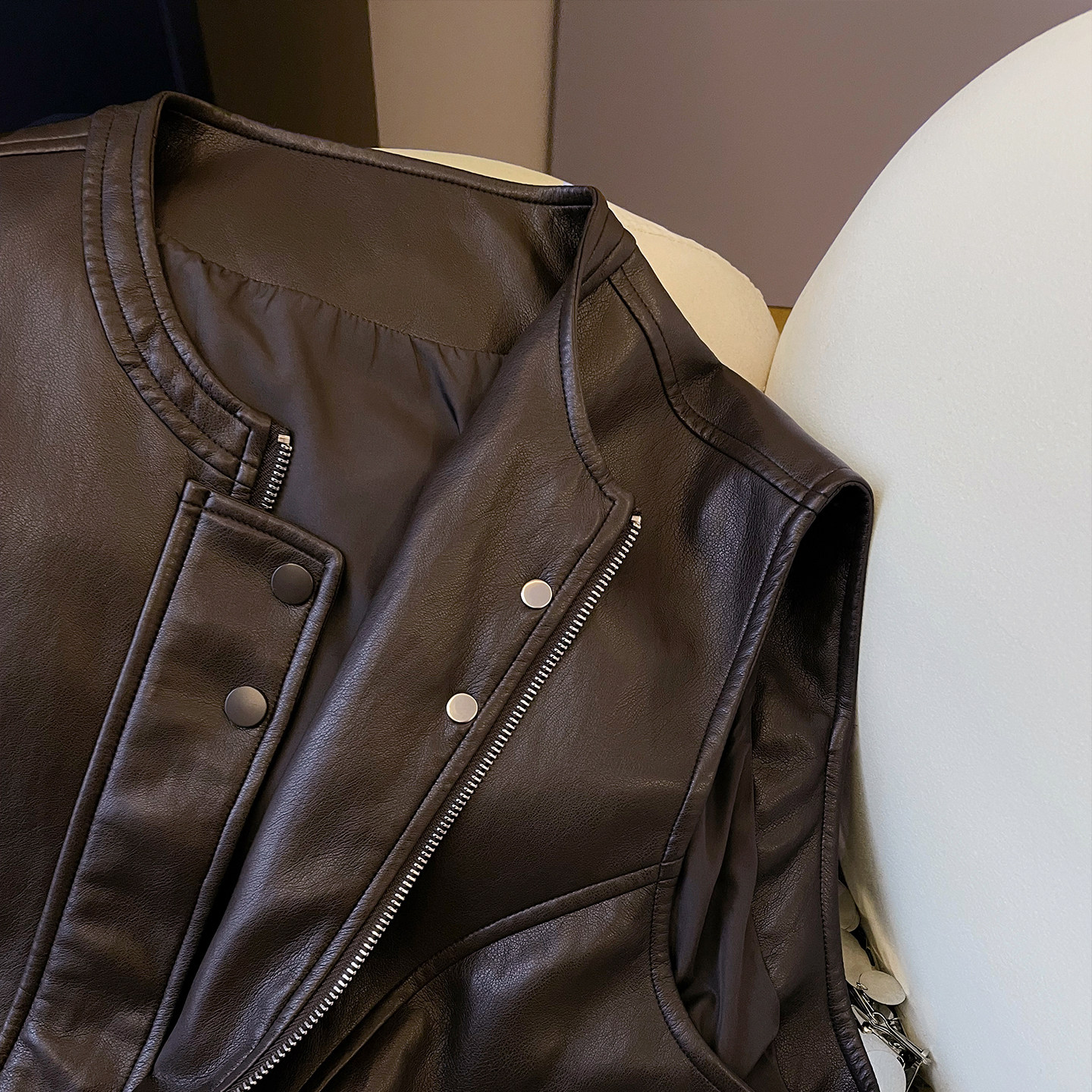 淘小C家 皮马甲女款2025新款冬高级感时髦洋气圆领马夹背心拉链外套