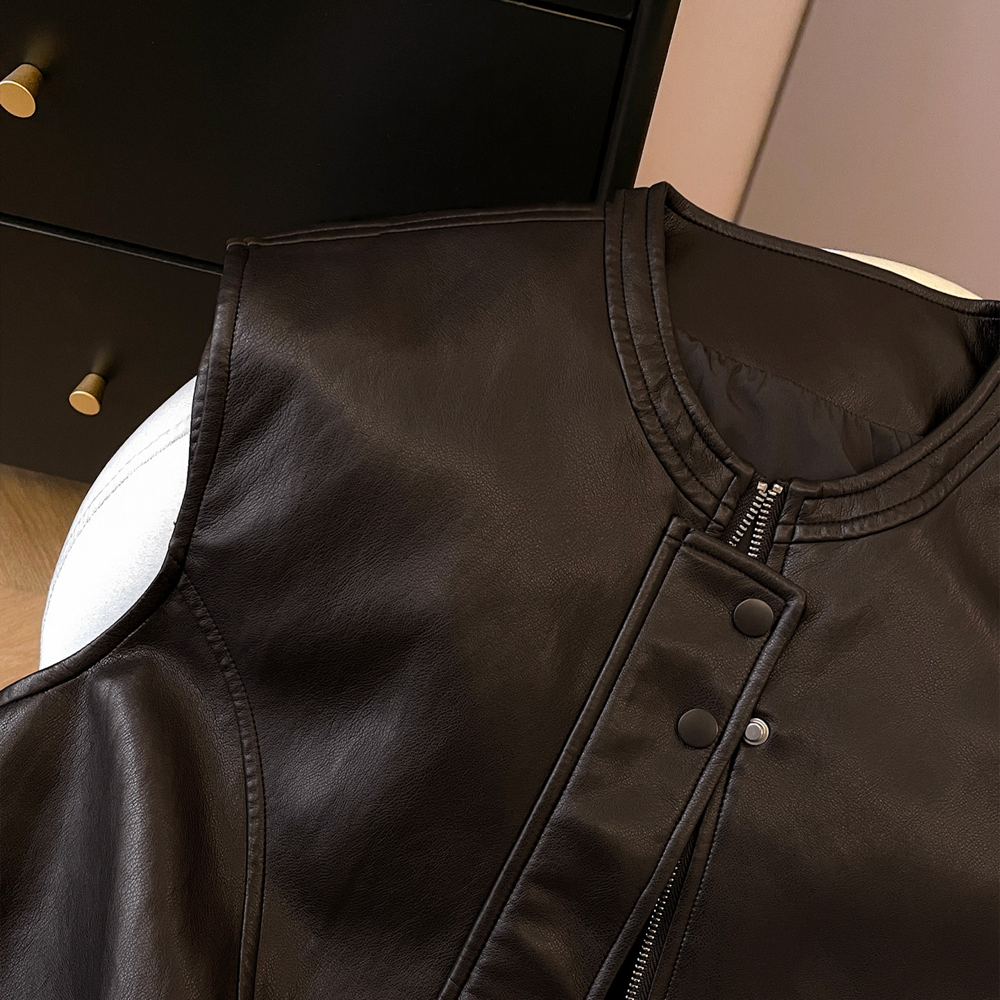 小C家 皮马甲女款2025新款冬高级感时髦洋气圆领马夹背心拉链外套