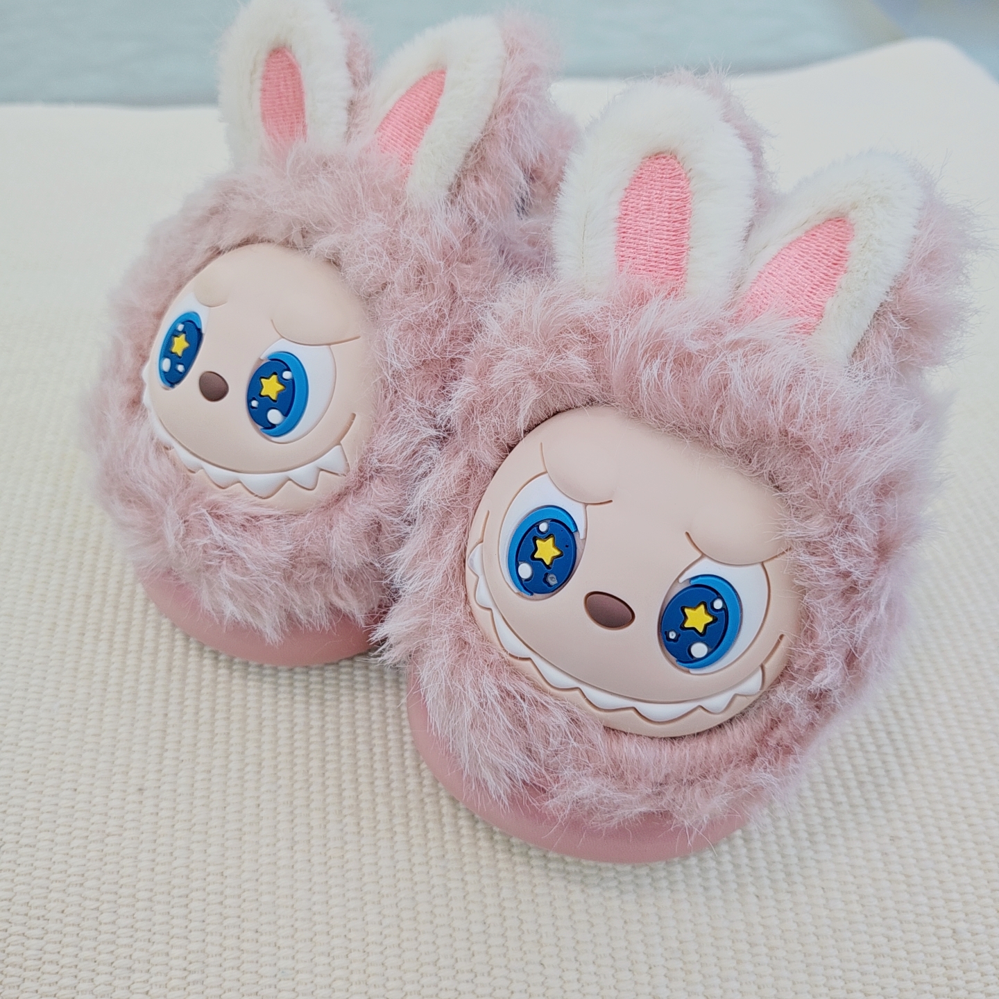 圣诞风蝴蝶结小狗毛绒冬季新款拖鞋加厚居家防滑防水棉拖女室内鞋