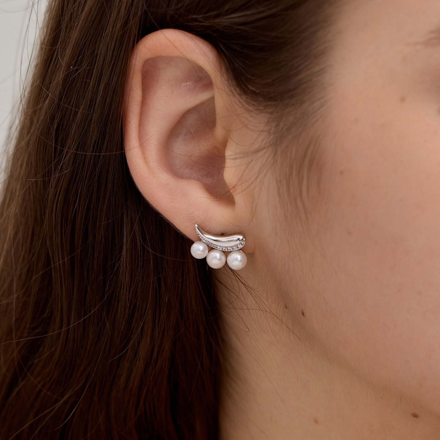 天ZEGL芭蕾系列花朵耳钉女小众春夏耳环耳夹人造珍珠适合圆脸的耳饰