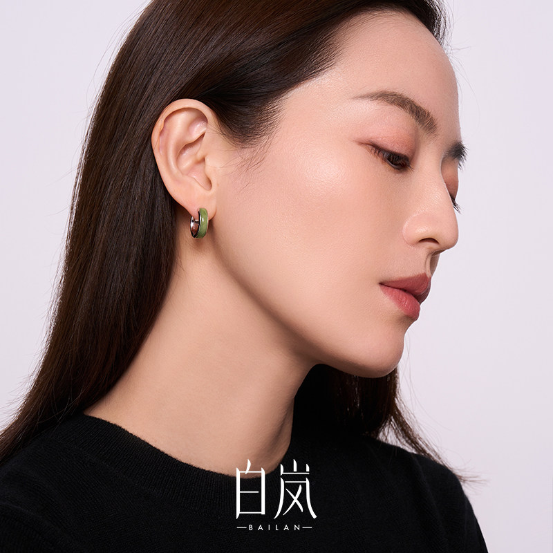 天猫白岚碧玉耳圈925银耳环耳饰女士小众轻奢新款设计精致配饰ED4562