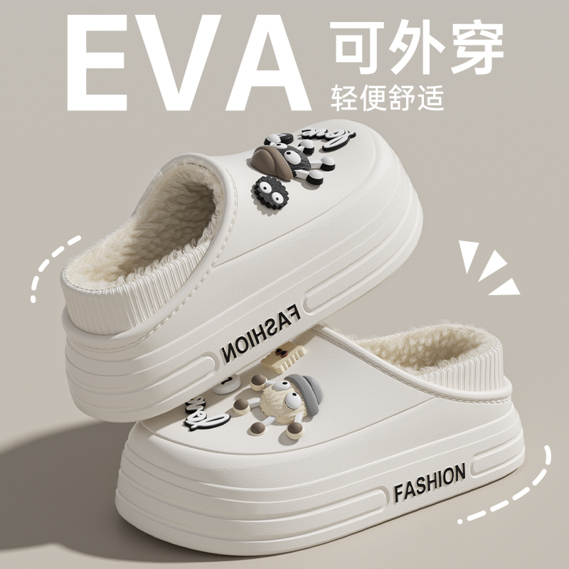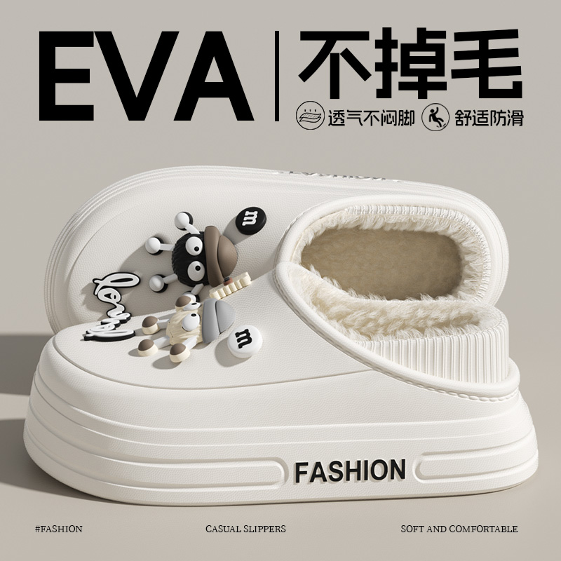 淘小牛路路36-41码小鸡双白眼人造皮居家室内地板女士皮棉拖鞋