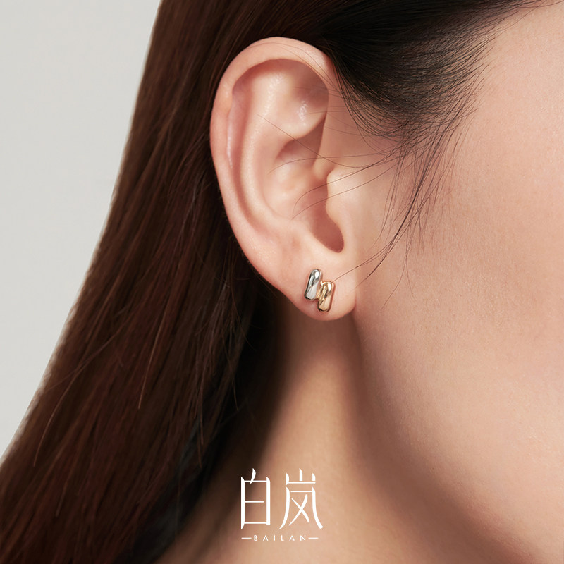 天猫白岚双色925银耳钉女时尚气质耳环轻奢小众设计感秋冬耳饰ED3348