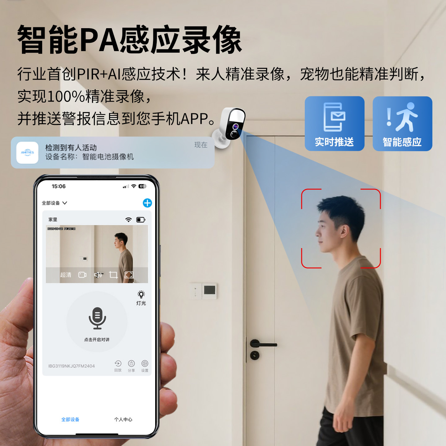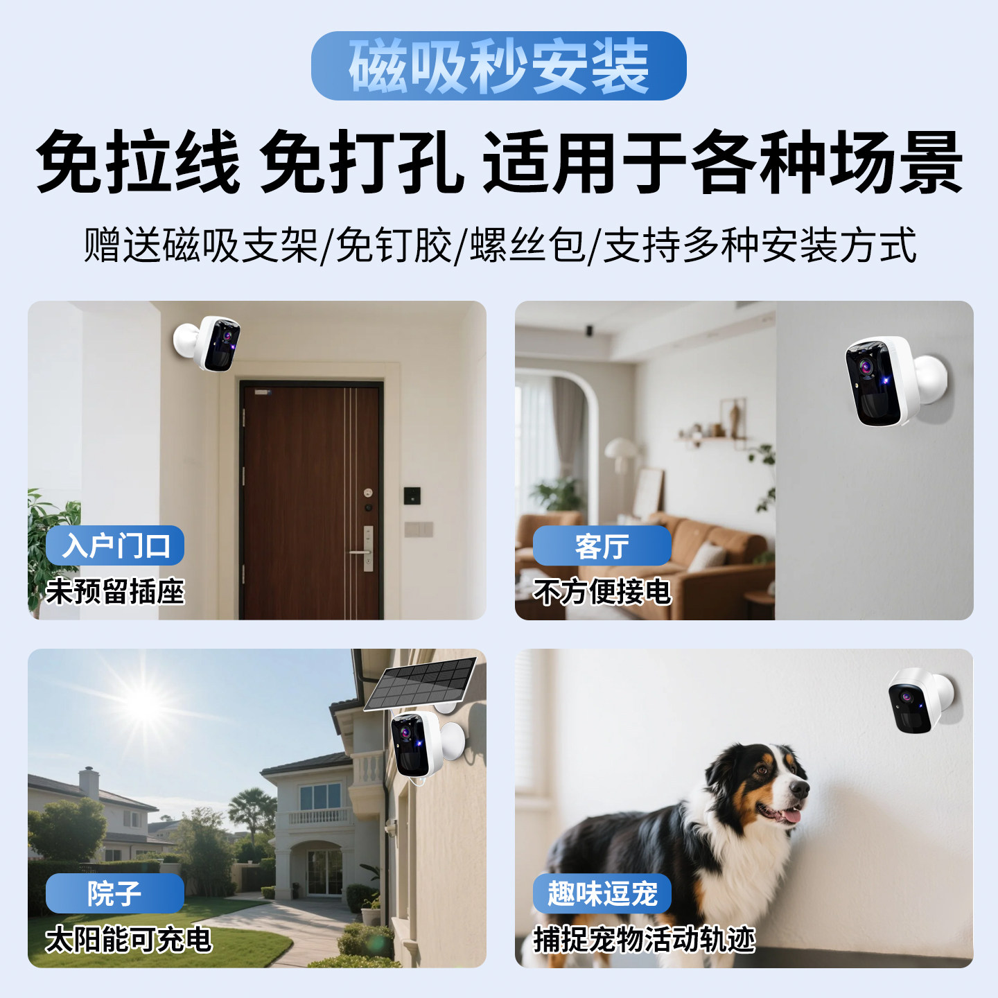 天摄像头免插电手机远程高清夜视监控器无线家用录像无需网络摄影头