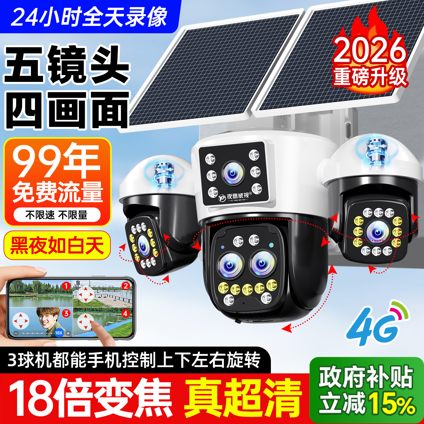 天室外摄像影头监控器360度无死角家用手机远程高清2026新款录像机