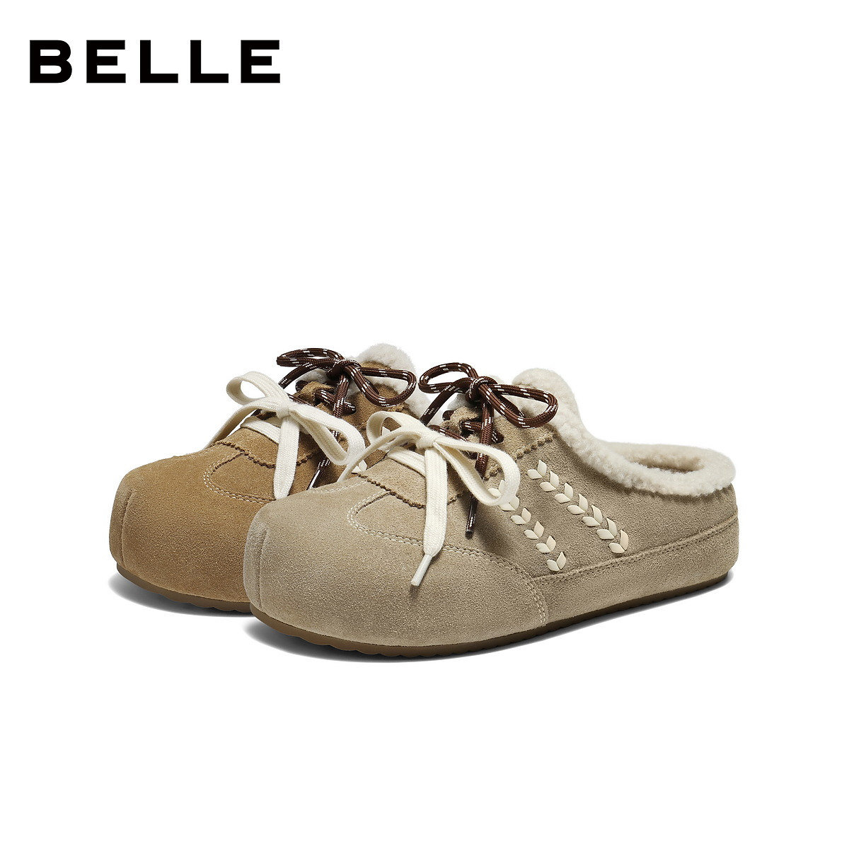 天猫百丽毛毛厚底勃肯鞋女鞋26春季新款商场加绒保暖拖鞋子F3U1DAH6