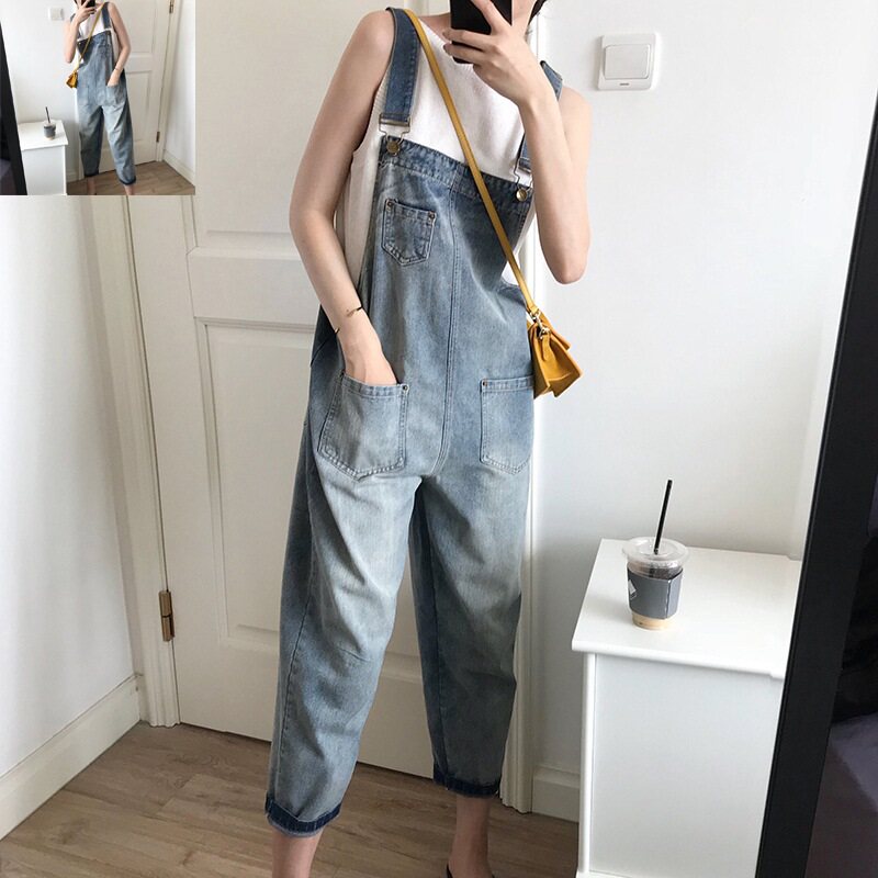 孕妇牛仔背带裤春秋款宽松大码吊带裤韩版休闲时尚减龄春季孕妇装