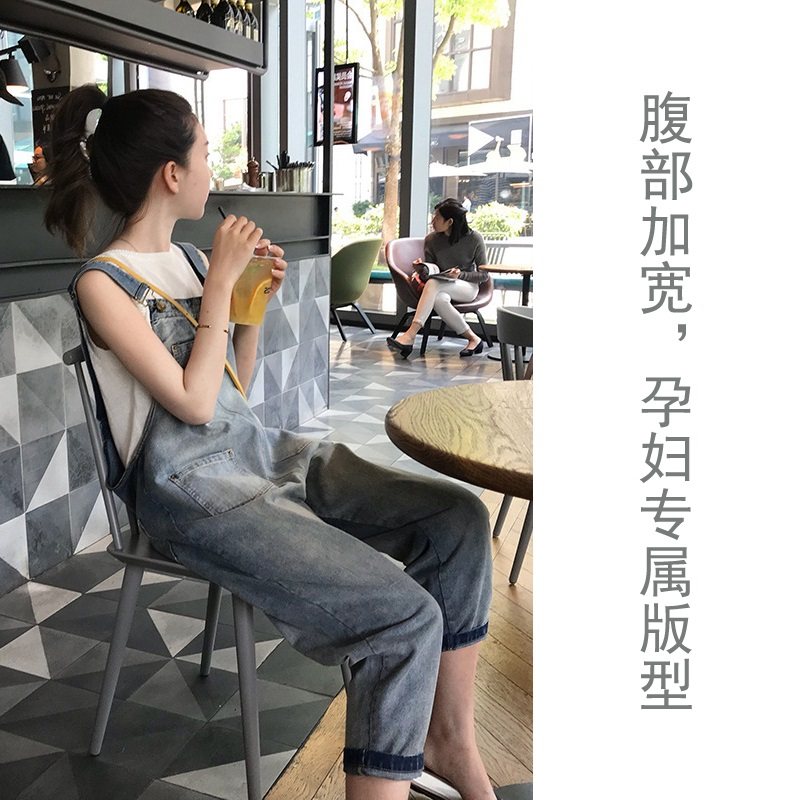 淘宝孕妇背带裤小个子套装春秋八分九分宽松大码休闲孕中期牛仔裤秋季