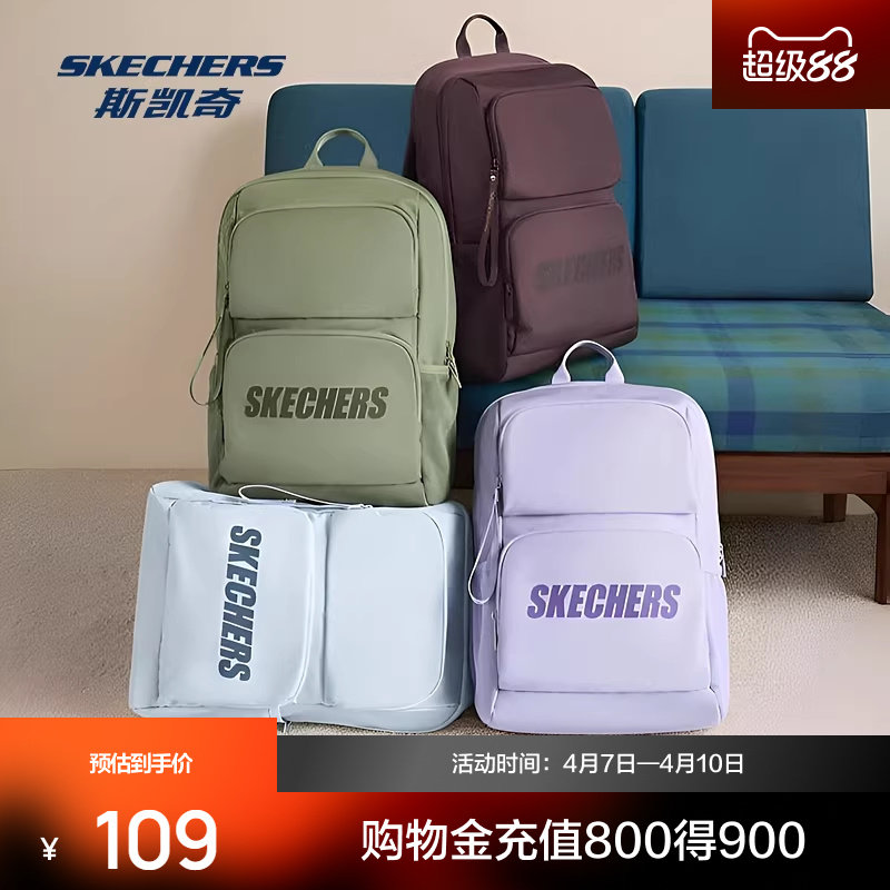 天猫斯凯奇双肩包大容量简约旅行背包开学季百搭大学生运动休闲书包