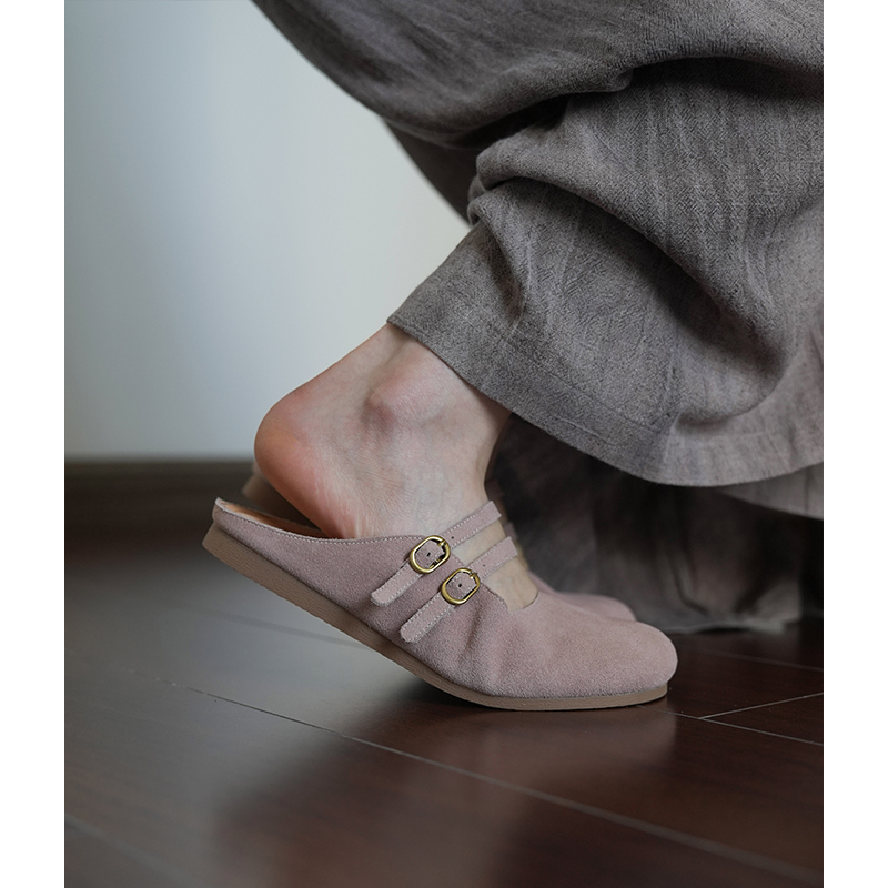 天包头毛毛棉拖鞋女秋冬外穿2025新款厚底加绒复古一脚蹬勃肯半拖鞋