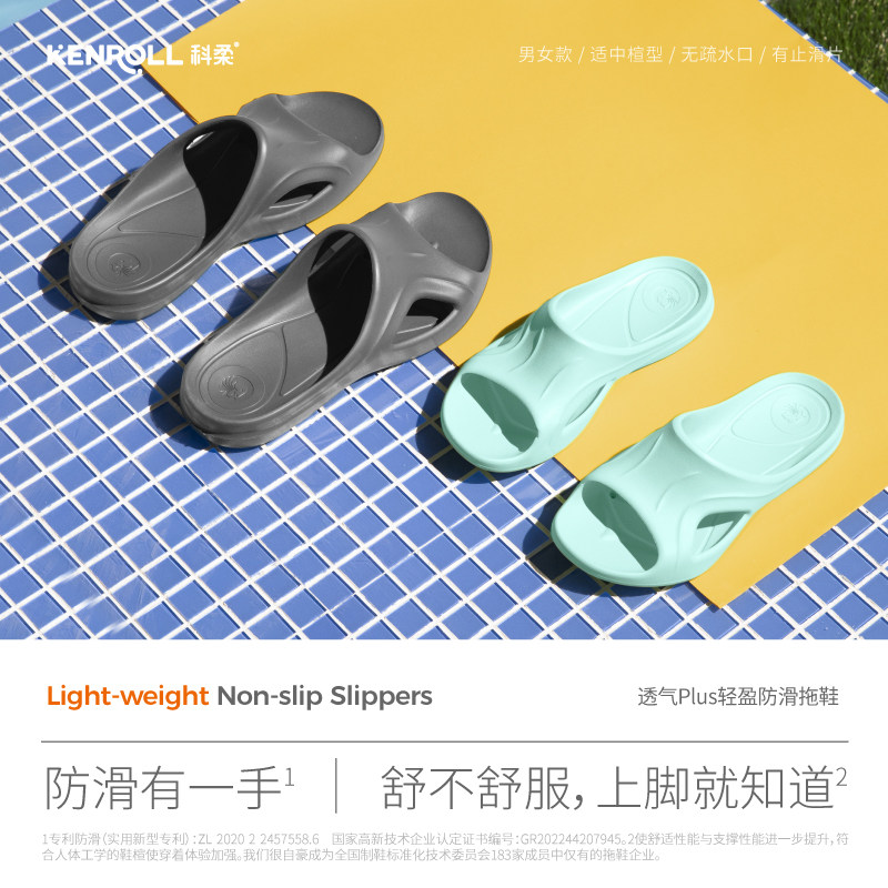 科柔专利防滑洗澡拖鞋四季款,专为居家浴室设计,采用高品质无味EVA材质,轻盈耐穿,环保健康。独特防滑底纹结合专利防滑技术,湿水环境依然稳固抓地,有效防止滑倒,特别适合老人、儿童及情侣日常使用。鞋面速干透气,排水快,不易滋生细菌,保持足部干爽舒适。简约时尚设计,男女同款,四季皆宜,室内外均可穿着。易清洗、不变形,长久使用仍保持良好性能。无论是沐浴、洗漱还是居家休闲,科柔防滑拖鞋都以安全与舒适为核心,守护全家人的每一步,是家庭卫浴空间的理想之选。