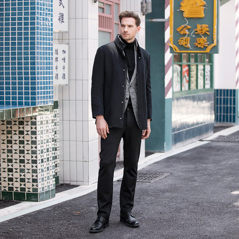 新款秋冬季毛呢大衣男士纯羊毛西装领双面呢时尚休闲无羊绒外套潮