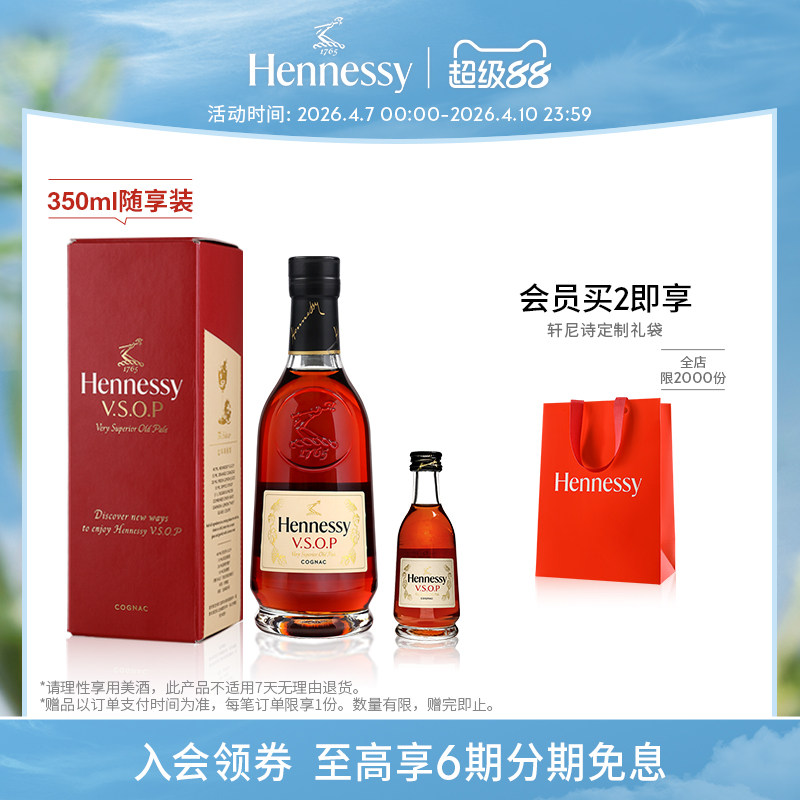 天猫【官方直营】轩尼诗VSOP干邑白兰地350ml随享装+50ml进口洋酒正品