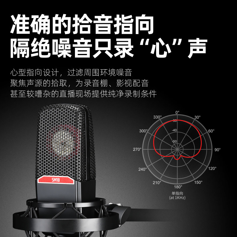 Takstar/得胜SM18二代麦克风直播设备全套专为直播、唱歌及有声书录制设计,集成高品质电容麦与专业声卡功能,实现即插即用。麦克风采用心型指向拾音,有效抑制环境噪音,确保人声清晰纯净。内置DSP音效芯片,支持实时调音、混响、变声等特效,满足多样化创作需求。配备防喷罩、悬臂支架及减震架,有效降低杂音干扰,提升录音质量。兼容电脑、手机及主流直播软件,适用于主播、配音爱好者及音乐创作者。SM18二代以高性价比和稳定性能,成为居家录音与直播的理想选择,助力用户轻松打造专业级音频体验。