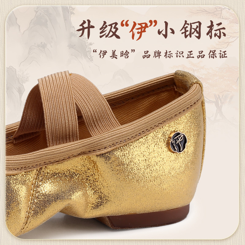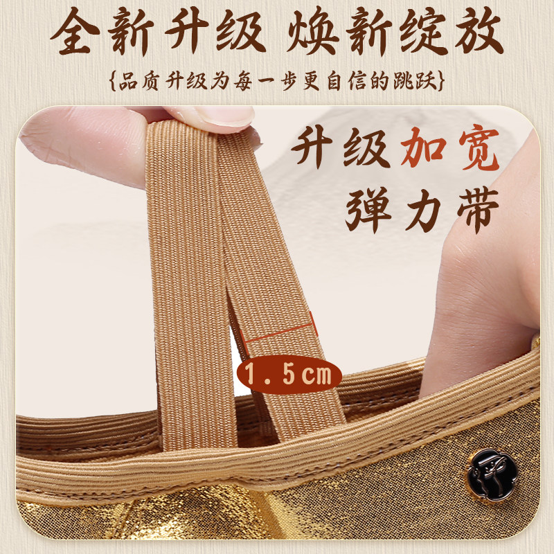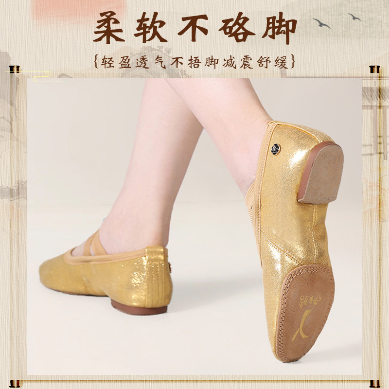 淘宝金色舞蹈鞋女软底专业古典舞鞋成人不累脚芭蕾练功鞋带跟跳舞鞋