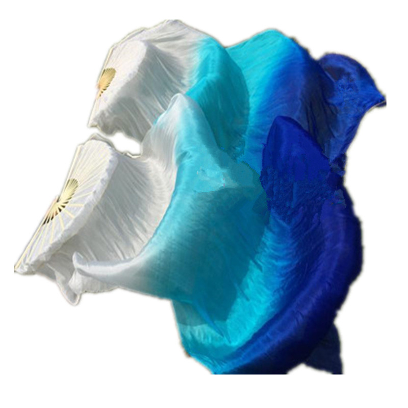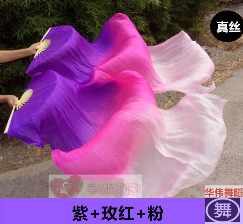 淘宝真丝肚皮舞双扇加长舞蹈扇彩色长绸扇子真丝长扇七彩渐变色舞蹈扇