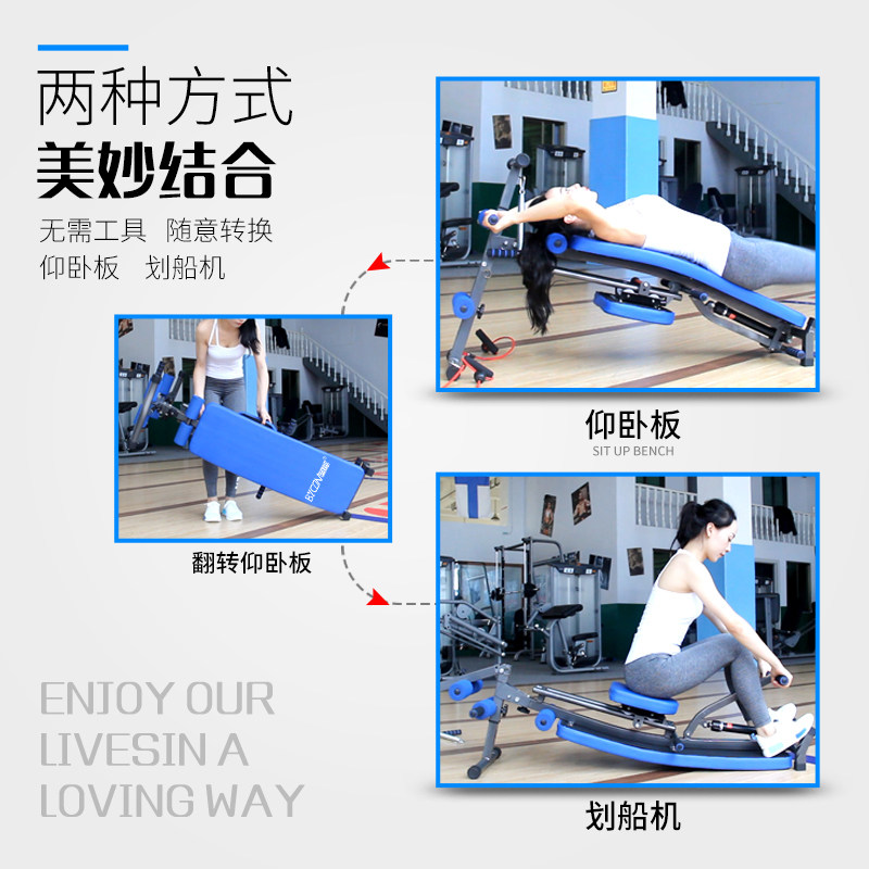 淘宝百创仰卧起坐划船器多功能可折叠划船机仰卧板家用卷腹器健身器材