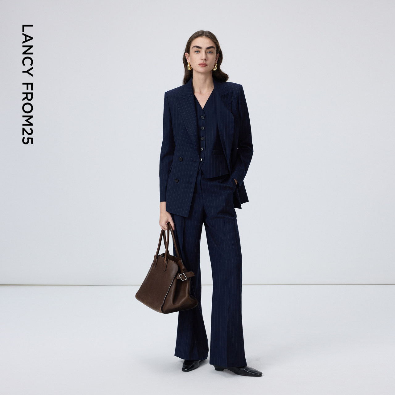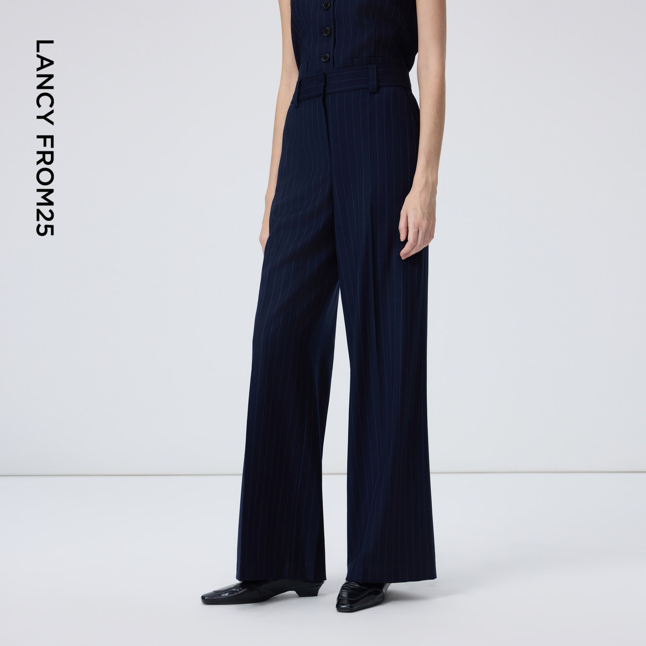 天猫朗姿羊毛直筒高智感条纹西裤商务干练通勤直筒裤女2026年春季新款