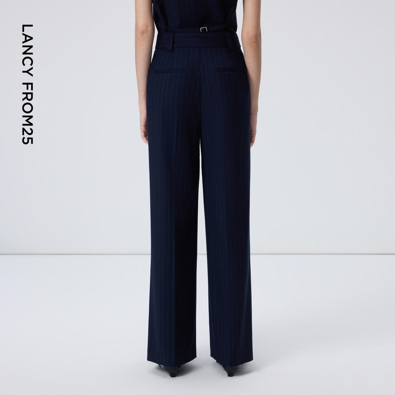 朗姿羊毛直筒高智感条纹西裤商务干练通勤直筒裤女2026年春季新款