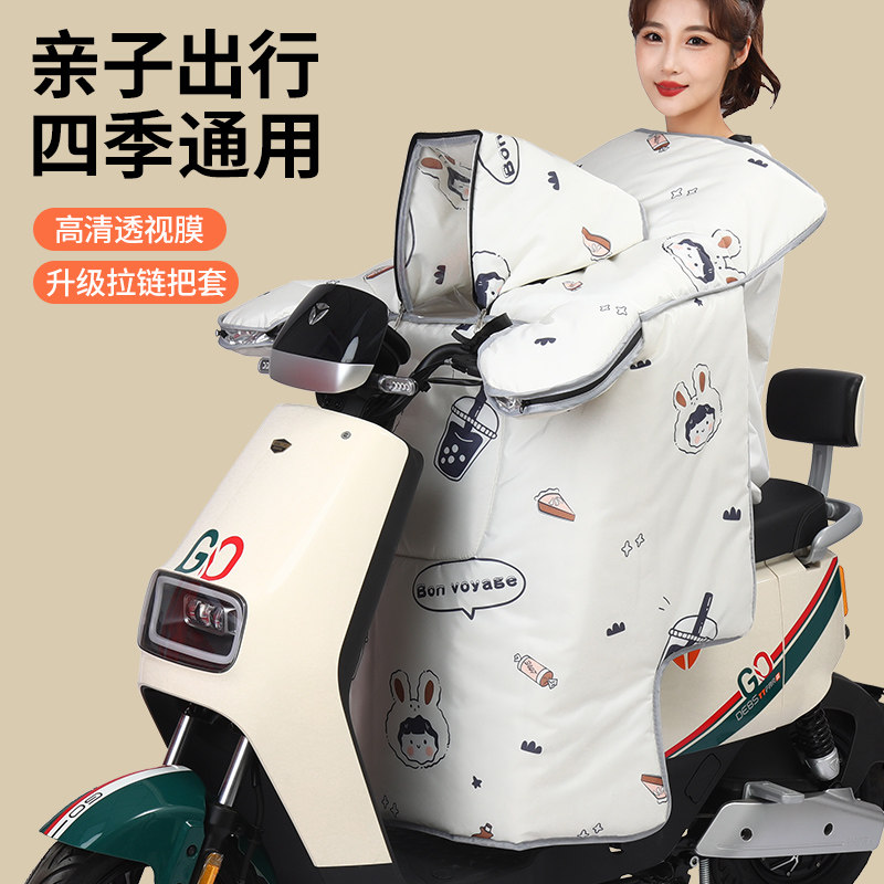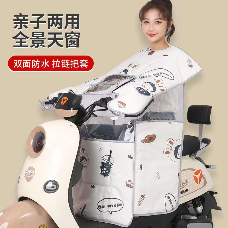 天猫亲子电动车挡风被四季通用带小孩防水春秋款中厚电瓶车防晒罩夏季