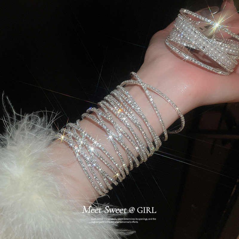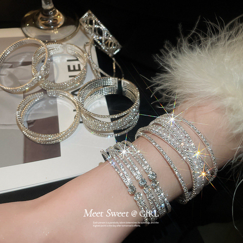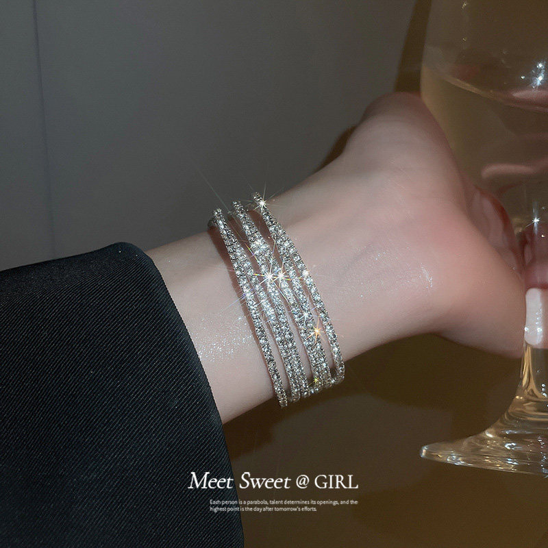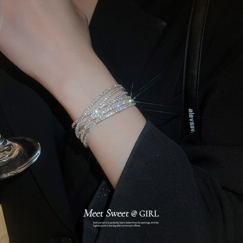 淘宝闪钻多层交叉镂空开口手镯女个性时尚气质手链高级感百搭手环手饰