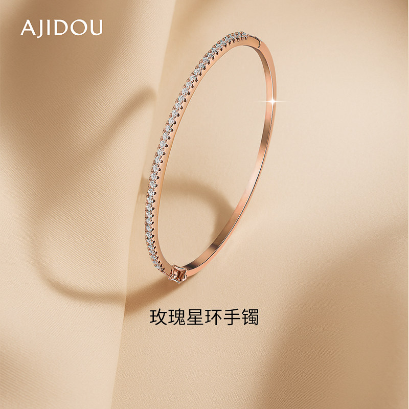 天猫AJIDOU阿吉豆手链玫瑰金闪耀手镯女款手串手饰官方精致首饰品手环