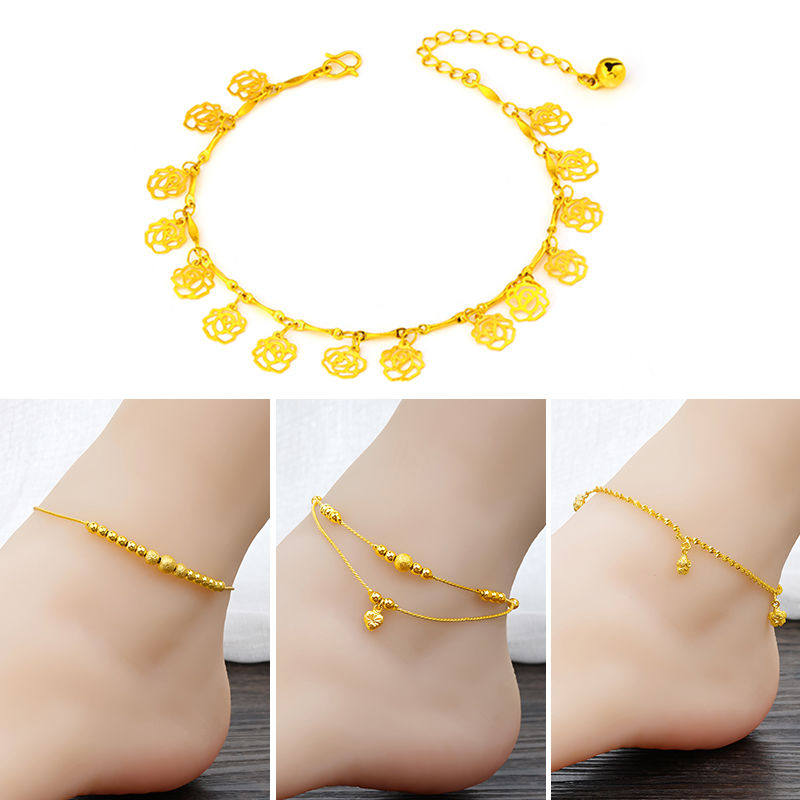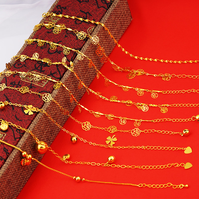 淘越南沙金久不掉色脚链女新款转运珠福字铃铛脚环个性百搭脚饰夏季