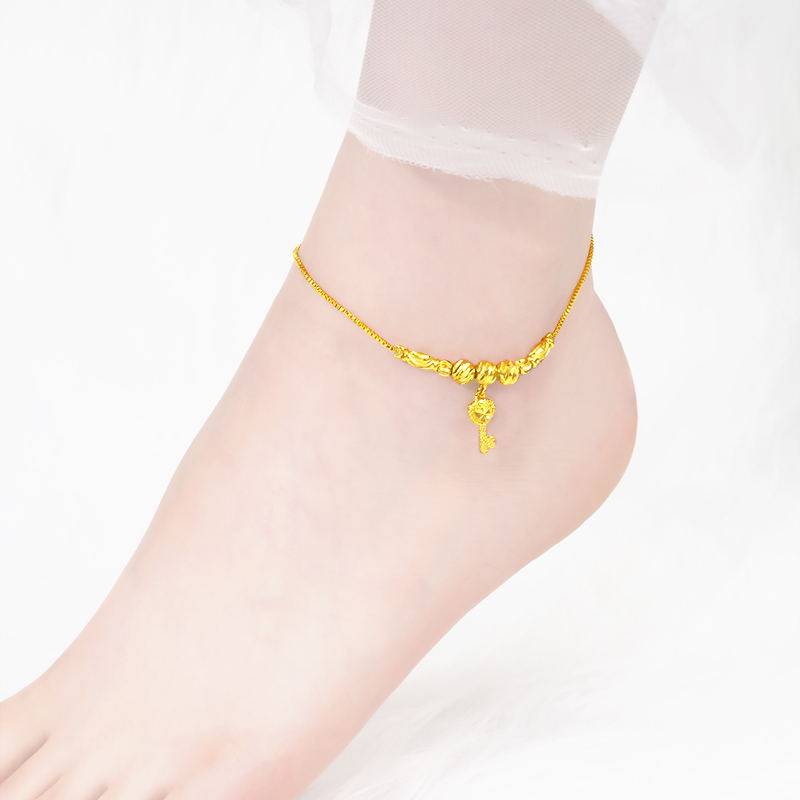 越南沙金久不掉色脚链女新款转运珠福字铃铛脚环个性百搭脚饰夏季