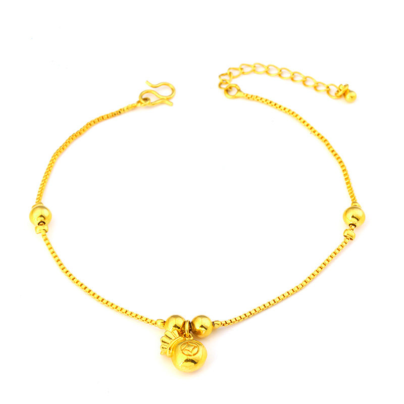 淘越南沙金不掉色脚链女 镀金转运珠葫芦铃铛脚环个性百搭潮人脚饰