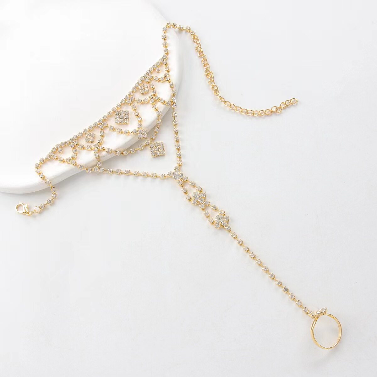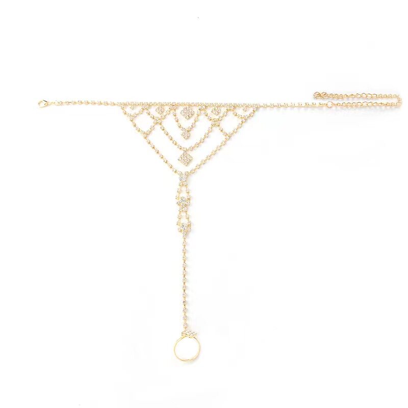淘宝新款复古热销水钻脚饰 沙滩度假时尚舞会简约闪亮连指脚链脚环女