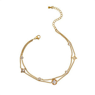 天猫轻奢小众设计感双层金属链条脚链女金色水晶装饰精致脚饰