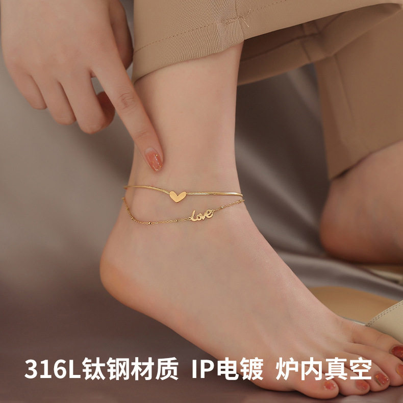 淘宝不掉色新款简约钛钢脚链女孩高级感红绳福字夏季时尚轻奢爱心脚饰