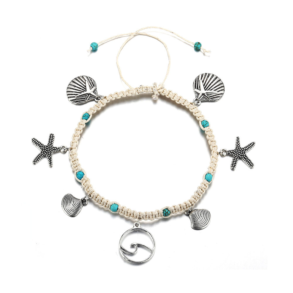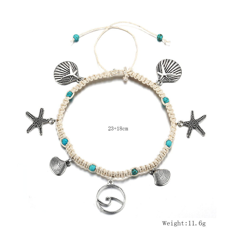 淘宝速卖通现货 海星编织海浪潮流吊坠脚链女个性绿松石扇贝脚饰