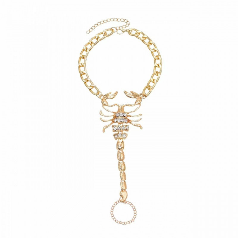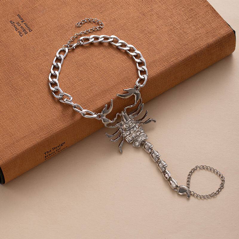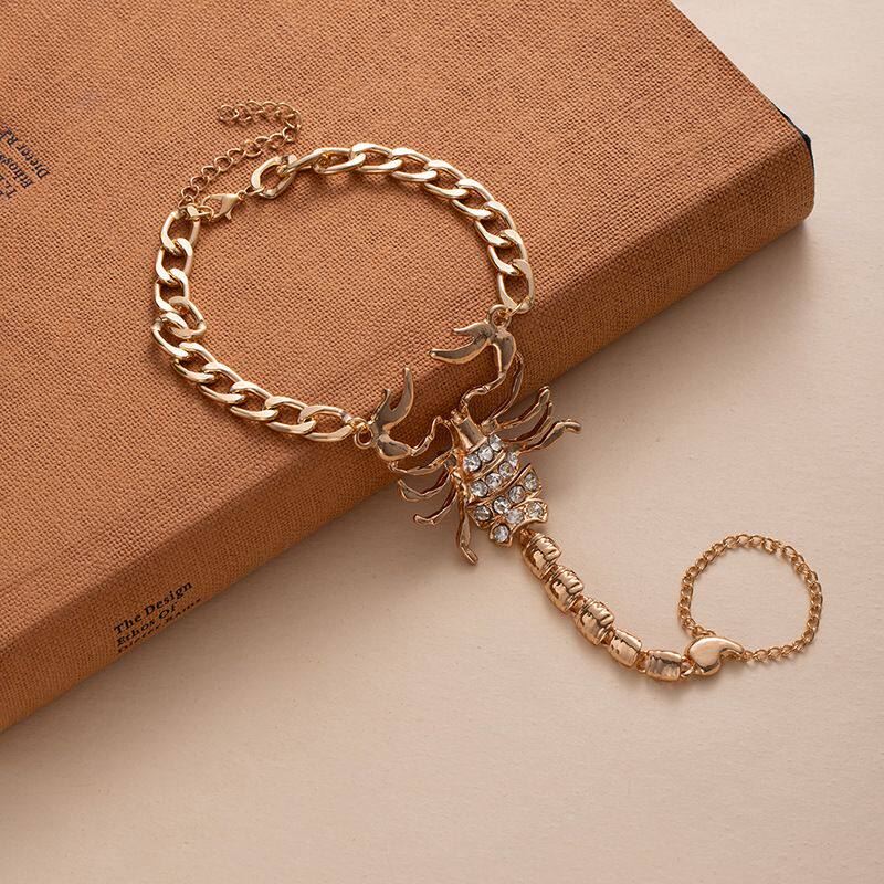 淘宝欧美跨境饰品甜酷辣妹单只金属脚链个性微镶蝎子立体连指脚饰批发