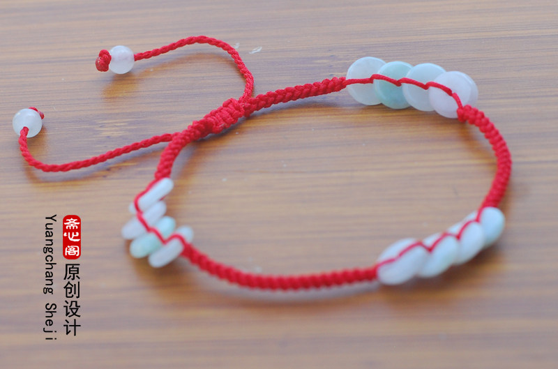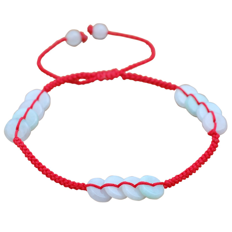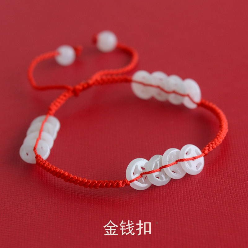 淘宝天然翡翠玉红绳脚链女平安扣金钱扣手工编织本命年红脚绳平安脚饰