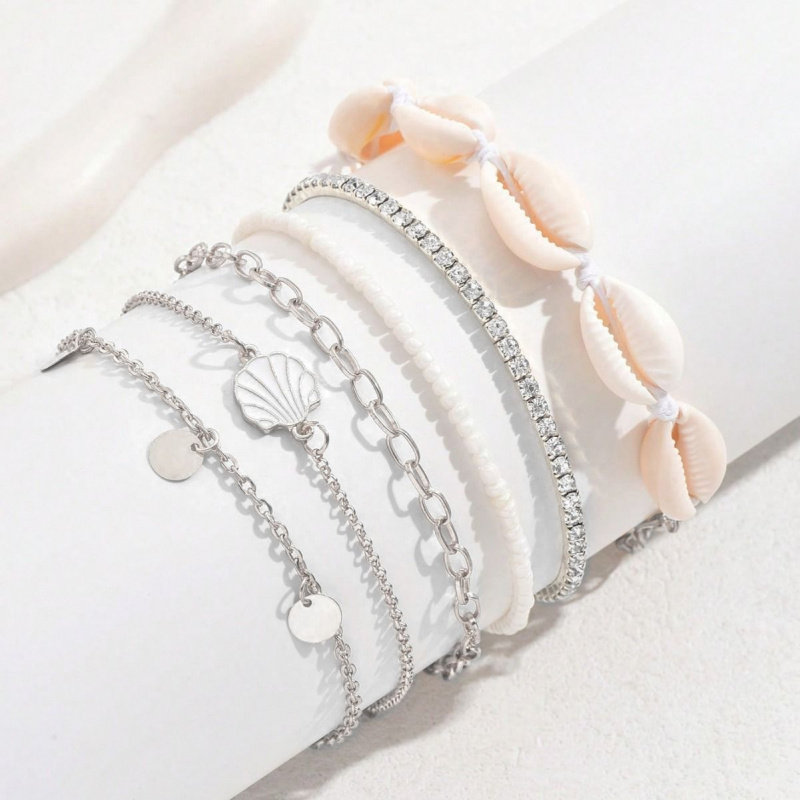 淘宝欧美跨境时尚天然贝壳圆币流苏脚链三件套女小众百搭气质脚饰批发