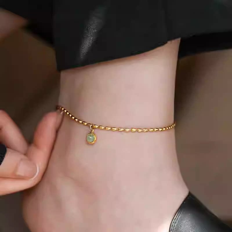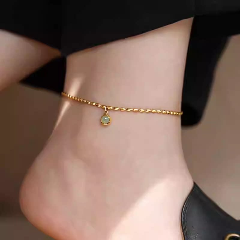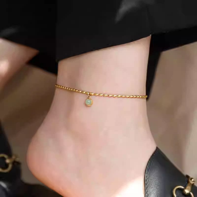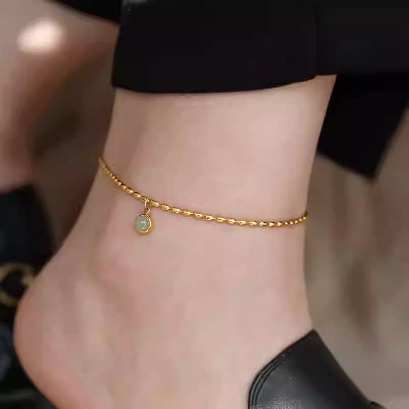 淘宝不掉色~镀18K金东陵玉小绿豆吊坠脚链轻奢高级感脚饰女新款设计