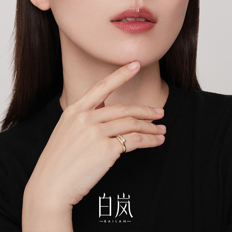 天猫白岚双色尾戒女925银戒指新款小众设计气质手饰首饰QL3047-BK