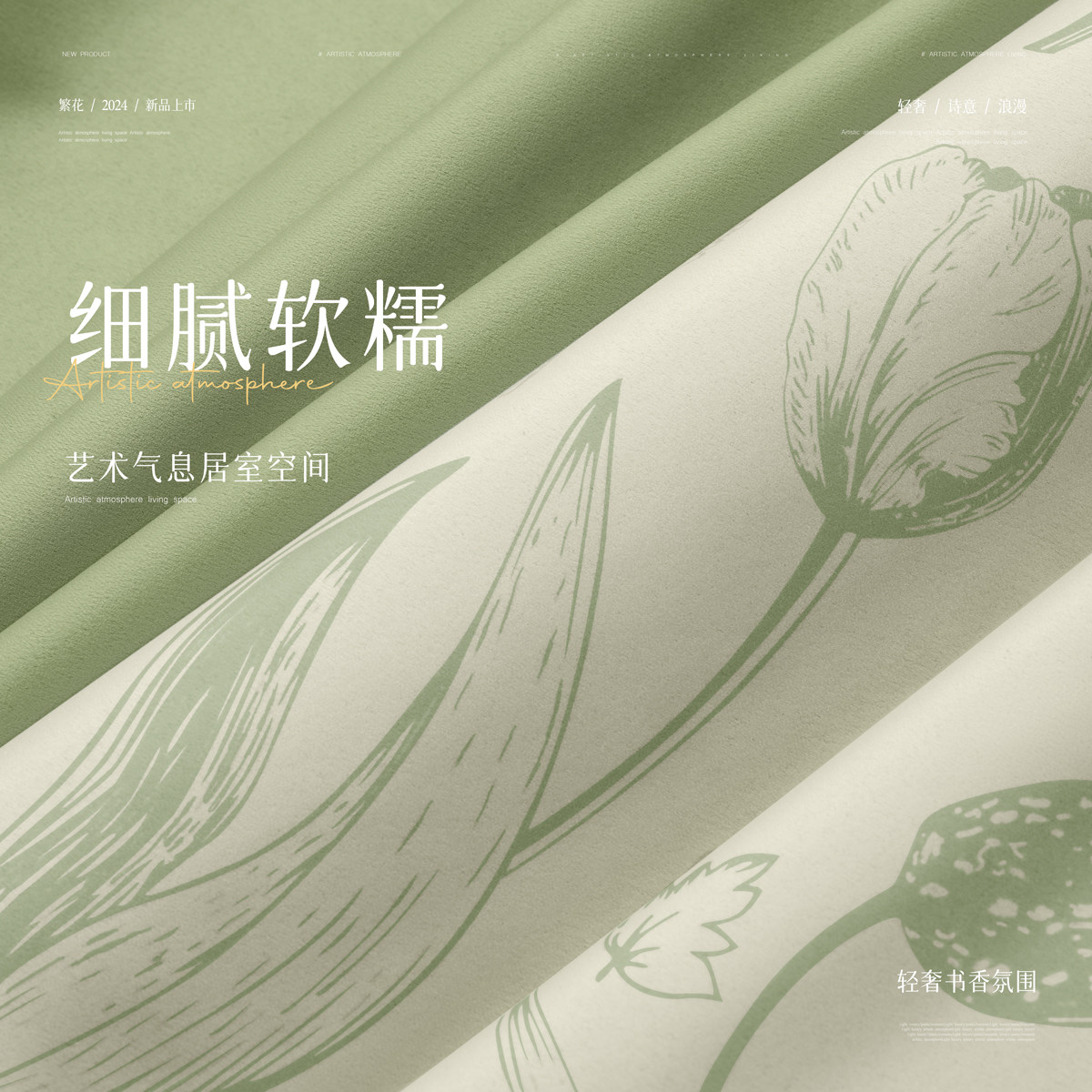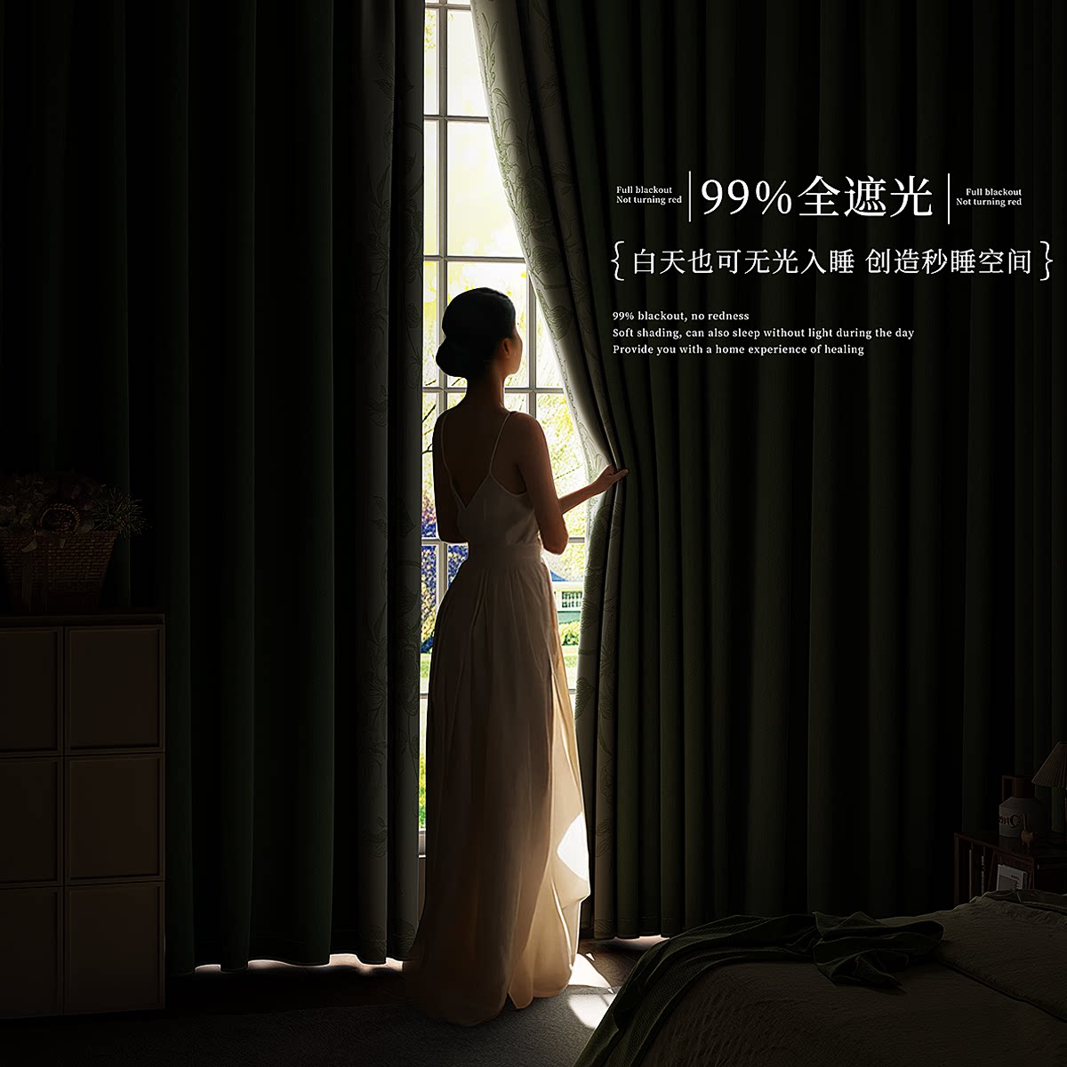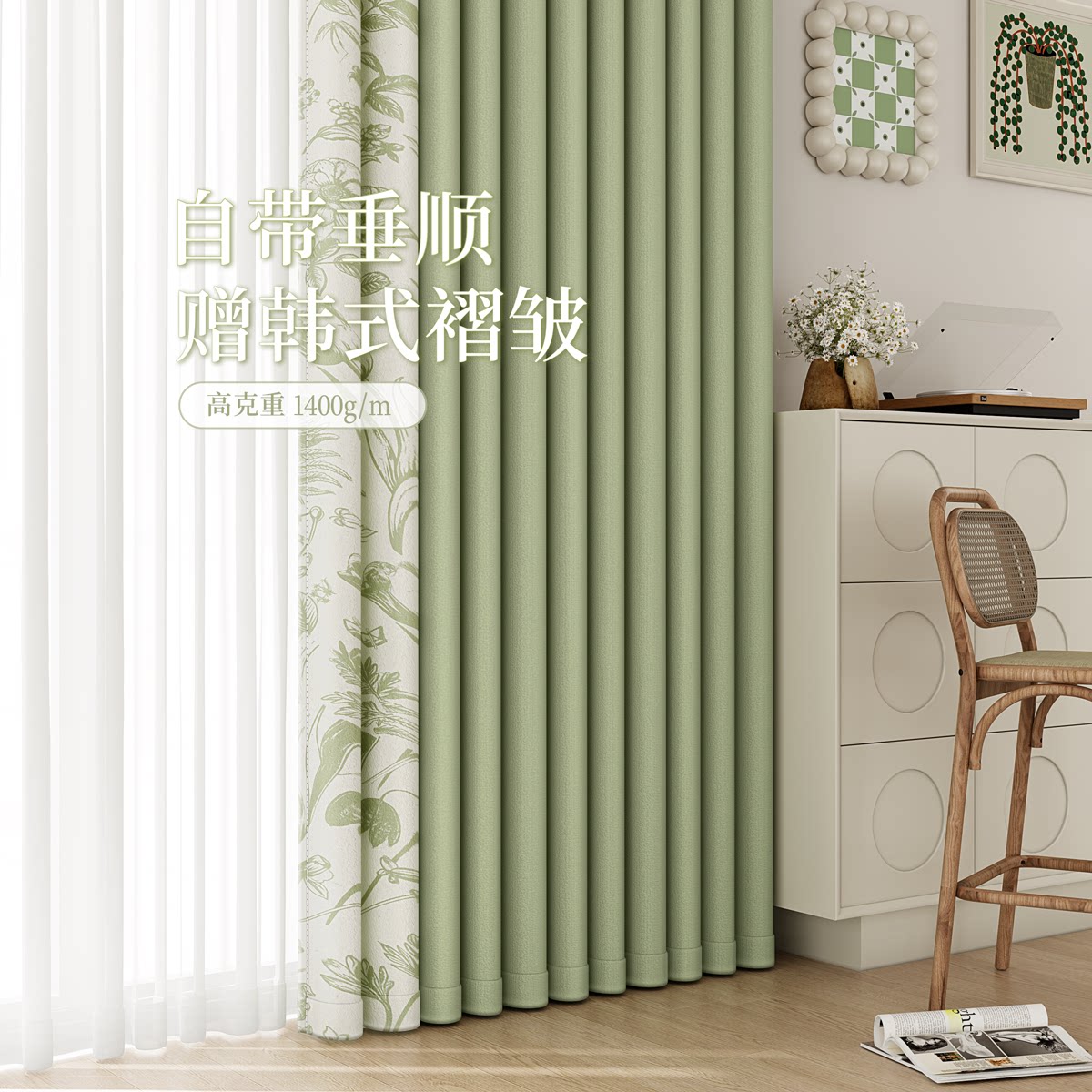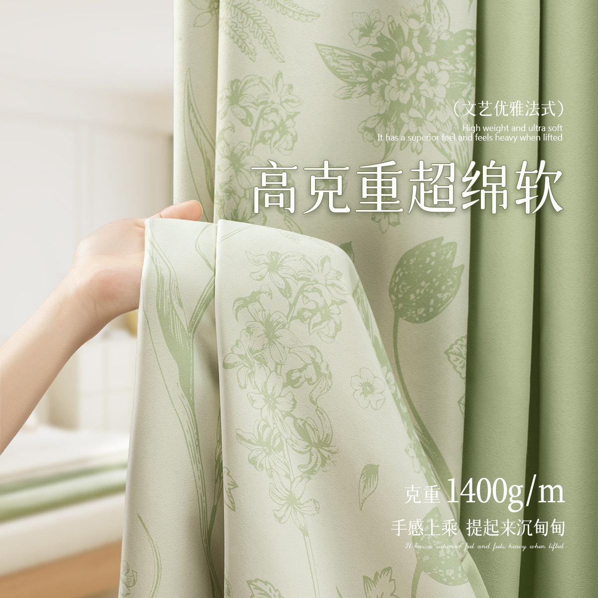 天猫法式绿色全遮光隔音布窗帘2026新款卧室客厅清新雪尼尔高级感飘窗