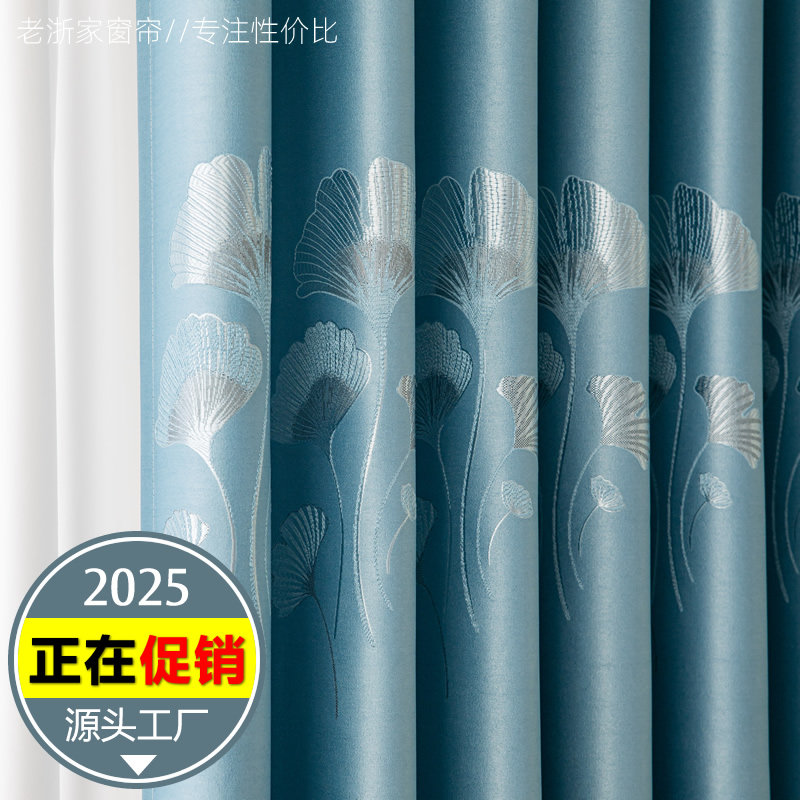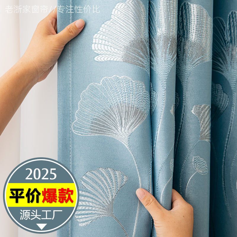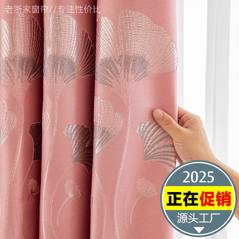 淘宝新款窗帘布提花加厚遮光遮阳卧室租房公寓自建房挂钩打孔定制成品
