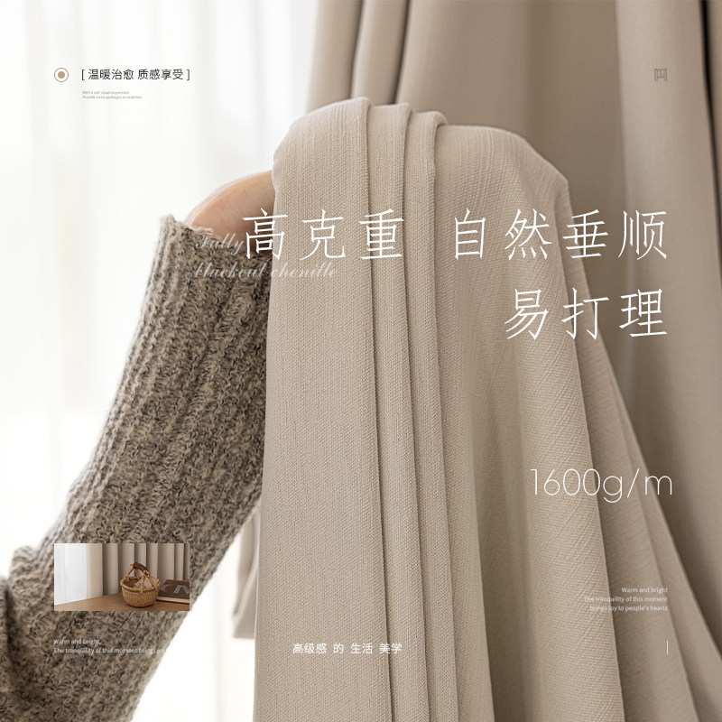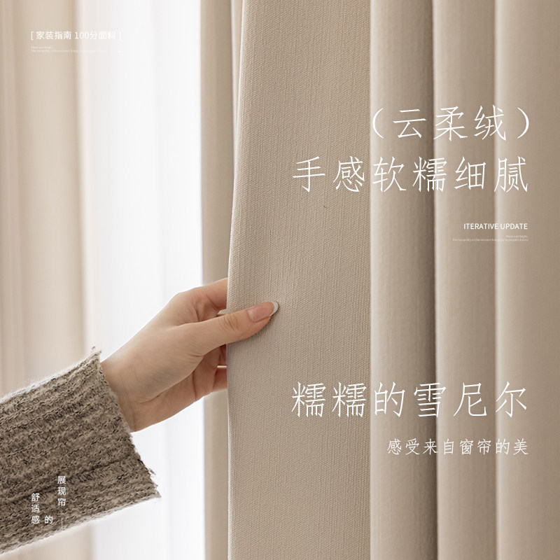 淘绍兴柯桥窗帘2026新款双面同色雪尼尔卧室全遮光布羊绒奶油风客厅