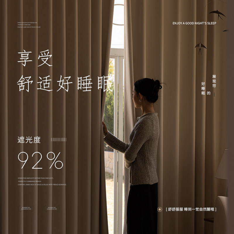 淘窗帘遮光2026新款卧室客厅阳台飘窗遮阳隔热防晒窗帘布加高挂钩式