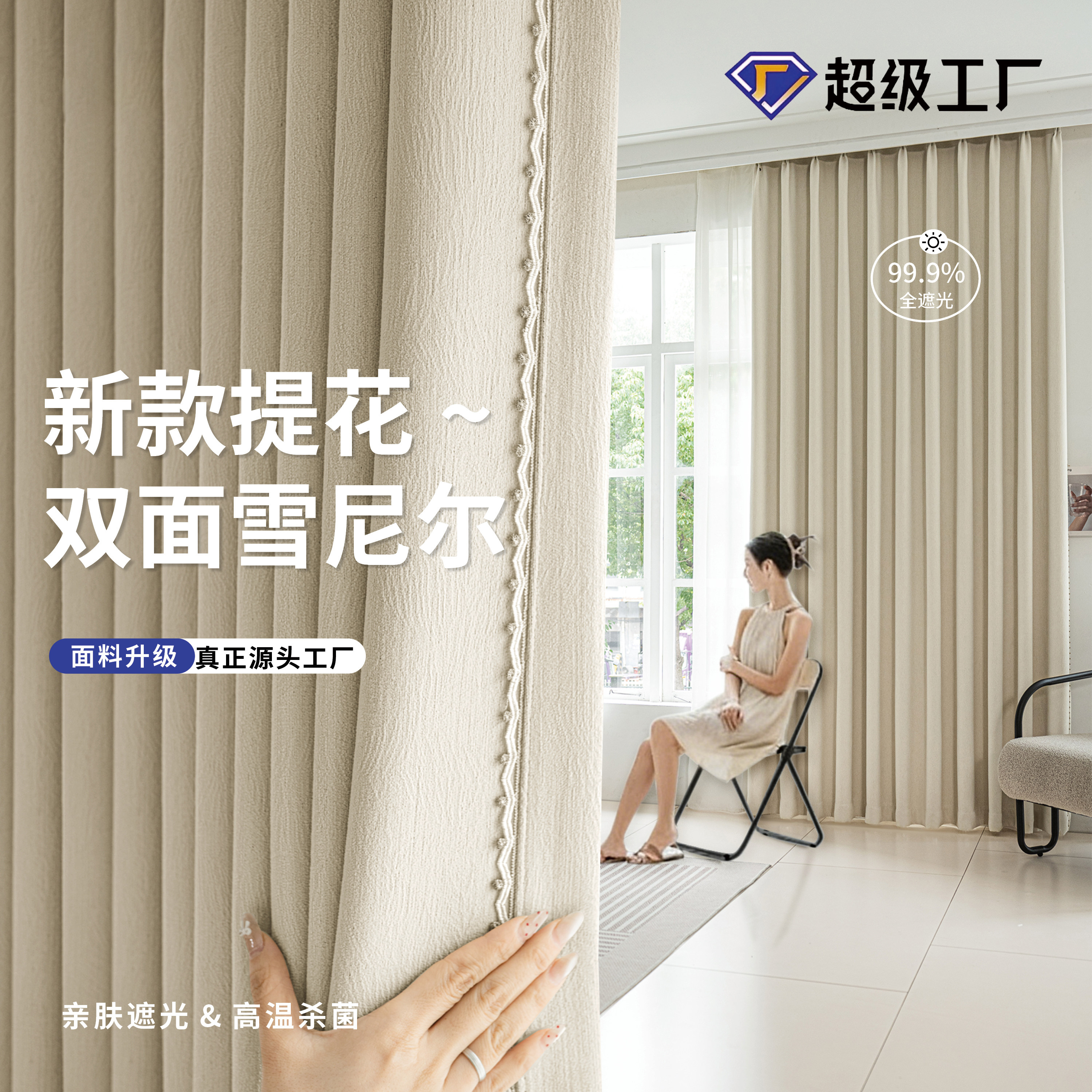 天窗帘全遮光卧室强隔音免打孔安装杆2026新款高级感防晒遮阳布定制