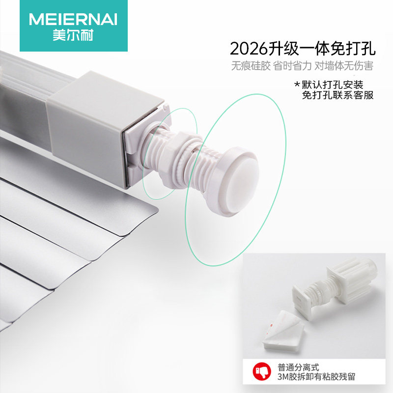 美尔耐百叶窗帘专为办公室、卫生间等空间打造,采用优质铝合金材质,坚固耐用、防潮防锈,适合多种环境。其免打孔设计安装便捷,无需破坏墙面,轻松实现即装即用。拉卷式操作灵活顺滑,可自由调节遮光高度,满足私密性与采光需求。独特的遮光叶片结构有效阻挡强光,营造舒适视觉环境,同时兼顾通风透气。简约现代的外观设计,适配各类装修风格,兼具实用性与美观性。无论是办公隔断还是卫生间隐私保护,美尔耐百叶窗帘都是理想之选,为您提供便捷、静音、耐用的遮阳解决方案。