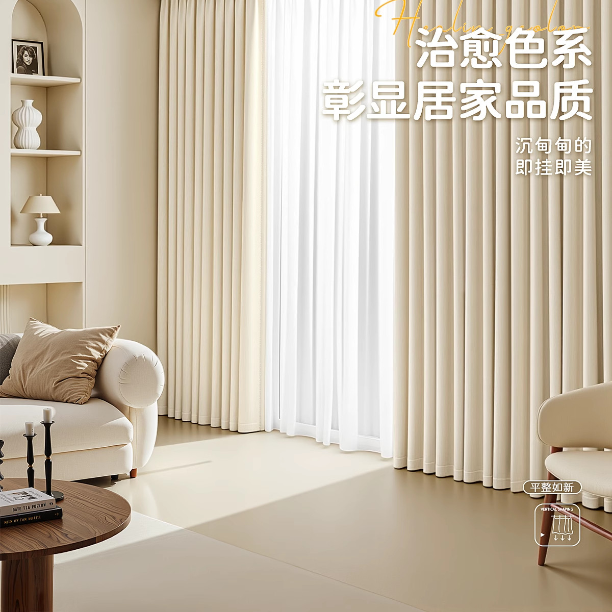天猫双面雪尼尔窗帘全遮光2026新款奶油风卧室高级感客厅免打孔安装