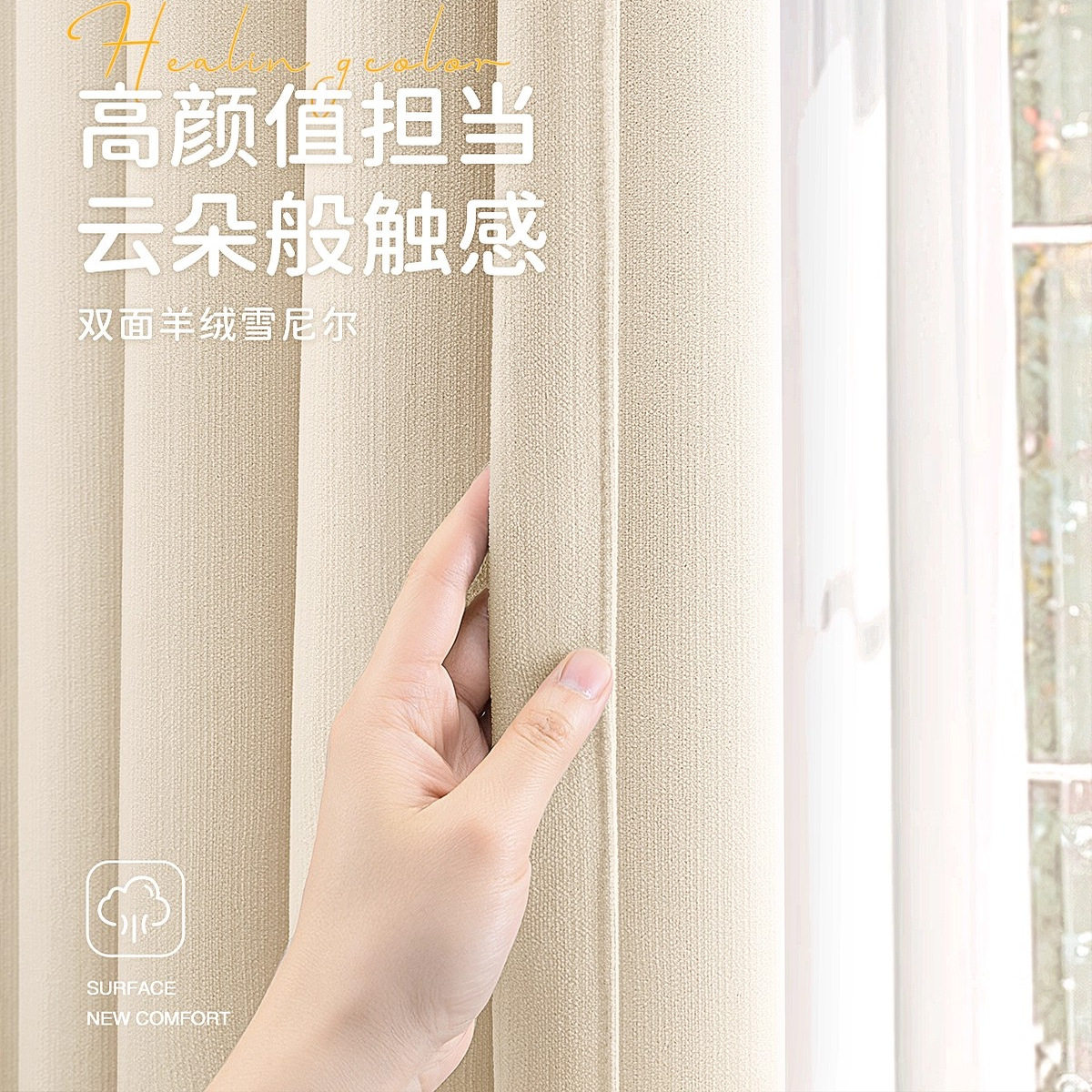淘绍兴柯桥窗帘2026新款双面同色雪尼尔卧室全遮光布羊绒奶油风客厅